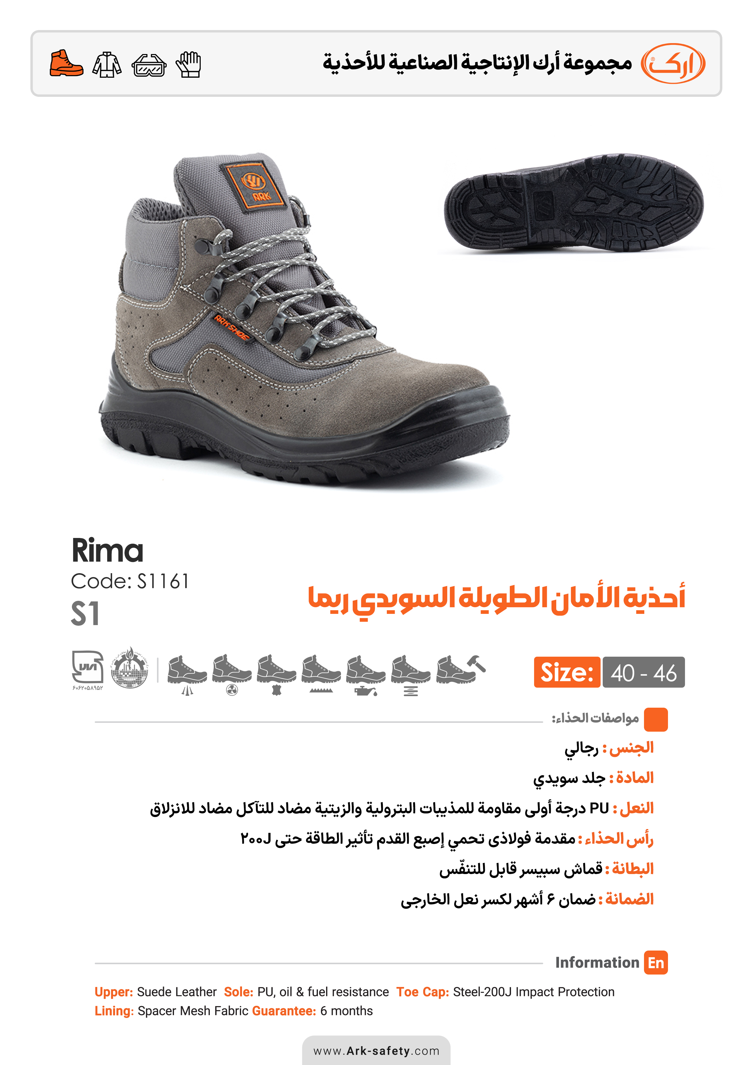 • رأس الحذاء : مقدمة فولاذی تحمي إصبع القدم تأثير الطاقة حتی 200J